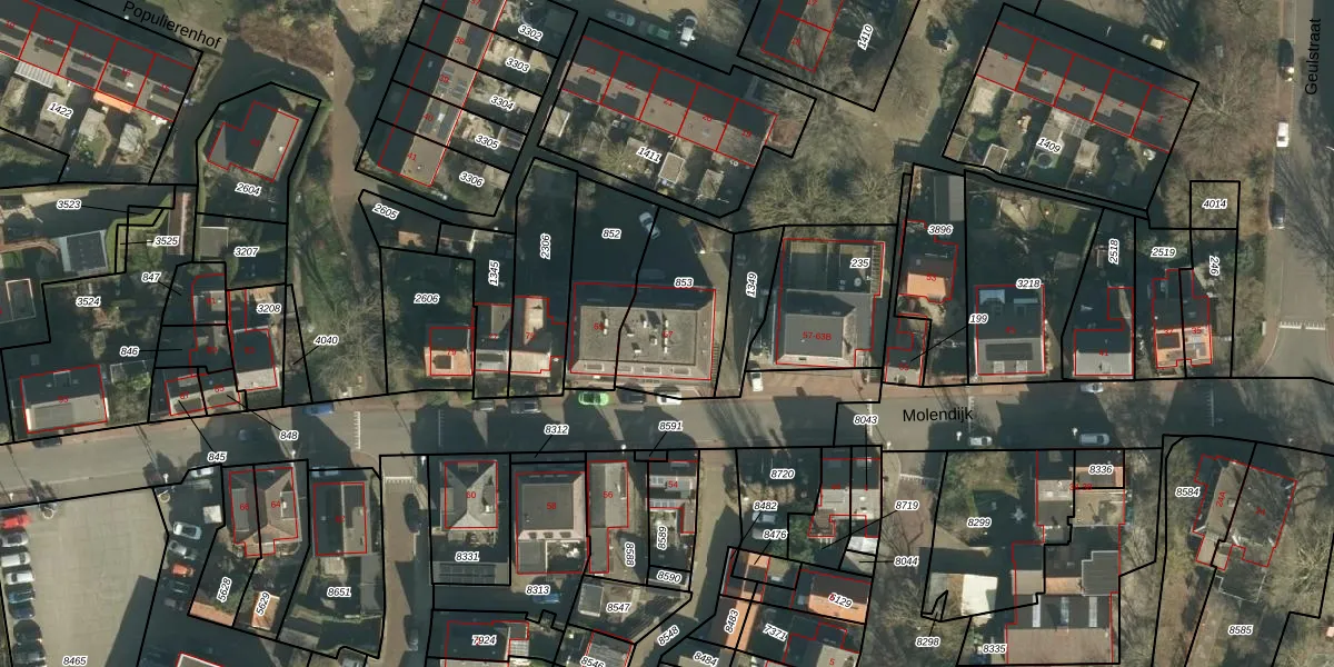 Gebruik de zoekbalk of klik op een perceel voor informatie over de adressen binnen dit perceel.