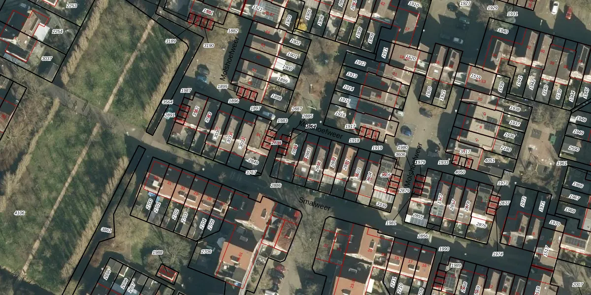 Molshoefweer 33 is gelegen op kadastraal perceel SDT00K2884. Deze kadastrale aanduiding is uniek en wordt gebruikt door het Kadaster om eigendomsrechten en andere zakelijke rechten vast te leggen. Het perceel maakt onderdeel uit van de kadastrale gemeente Sliedrecht.