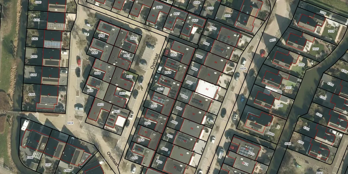 Het perceel waarop Overlaat 56 staat heeft een oppervlakte van 172 m². Dit is een middelgroot perceel. De perceeloppervlakte wordt geregistreerd door het Kadaster. Gedetailleerde informatie over de maten van dit perceel kunt u vinden in het rapport Kadastrale kaart met maatvoering van Overlaat 56.
