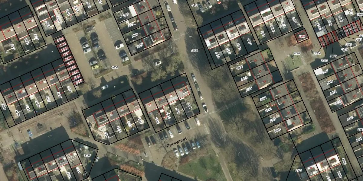 Het perceel waarop Prickwaert 62 staat heeft een oppervlakte van 200 m². Dit is een middelgroot perceel. De perceeloppervlakte wordt geregistreerd door het Kadaster. Gedetailleerde informatie over de maten van dit perceel kunt u vinden in het rapport Kadastrale kaart met maatvoering van Prickwaert 62.