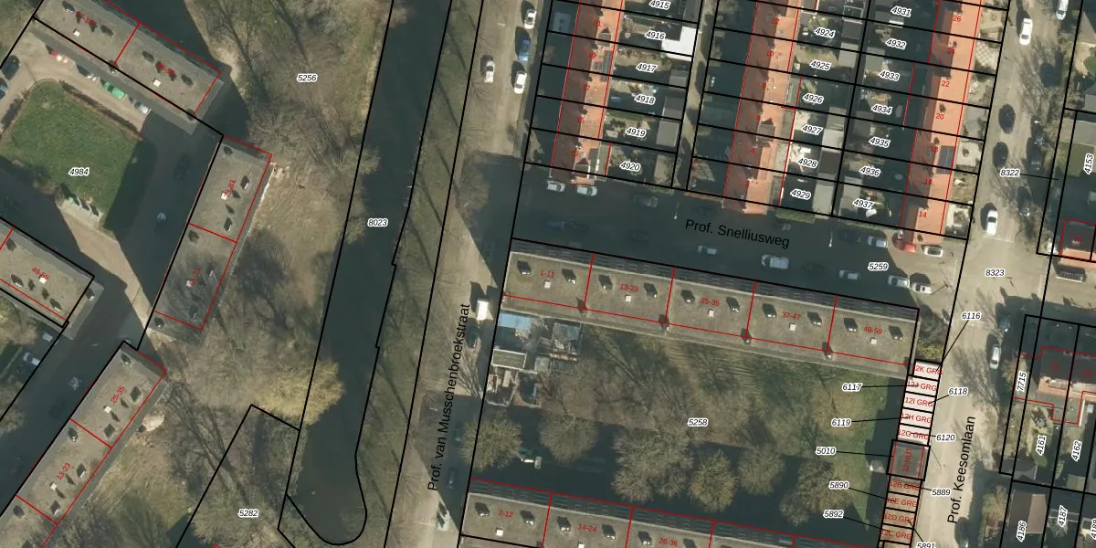 Prof. Snelliusweg 9 is gelegen op kadastraal perceel SDT00I5258. Deze kadastrale aanduiding is uniek en wordt gebruikt door het Kadaster om eigendomsrechten en andere zakelijke rechten vast te leggen. Het perceel maakt onderdeel uit van de kadastrale gemeente Sliedrecht.