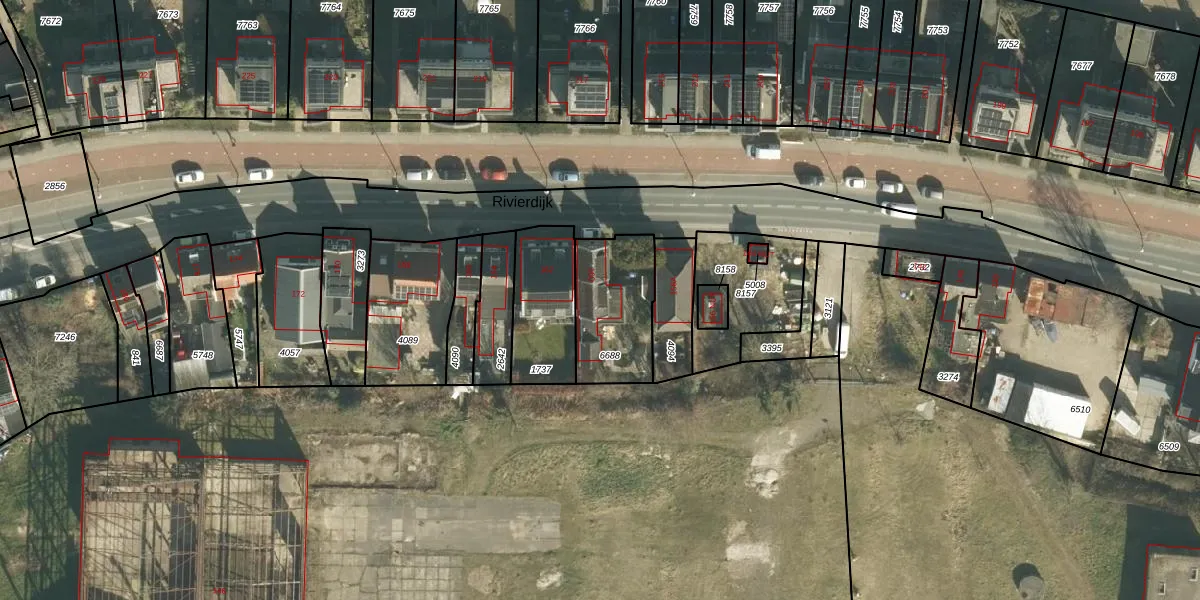 Het perceel waarop Rivierdijk 160 staat heeft een oppervlakte van 313 m². Dit is een groot perceel. De perceeloppervlakte wordt geregistreerd door het Kadaster. Gedetailleerde informatie over de maten van dit perceel kunt u vinden in het rapport Kadastrale kaart met maatvoering van Rivierdijk 160.