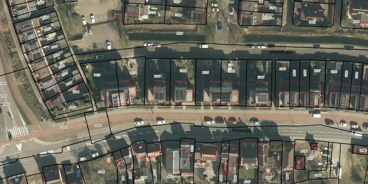 Het perceel waarop Rivierdijk 223 staat heeft een oppervlakte van 353 m². Dit is een groot perceel. De perceeloppervlakte wordt geregistreerd door het Kadaster. Gedetailleerde informatie over de maten van dit perceel kunt u vinden in het rapport Kadastrale kaart met maatvoering van Rivierdijk 223.