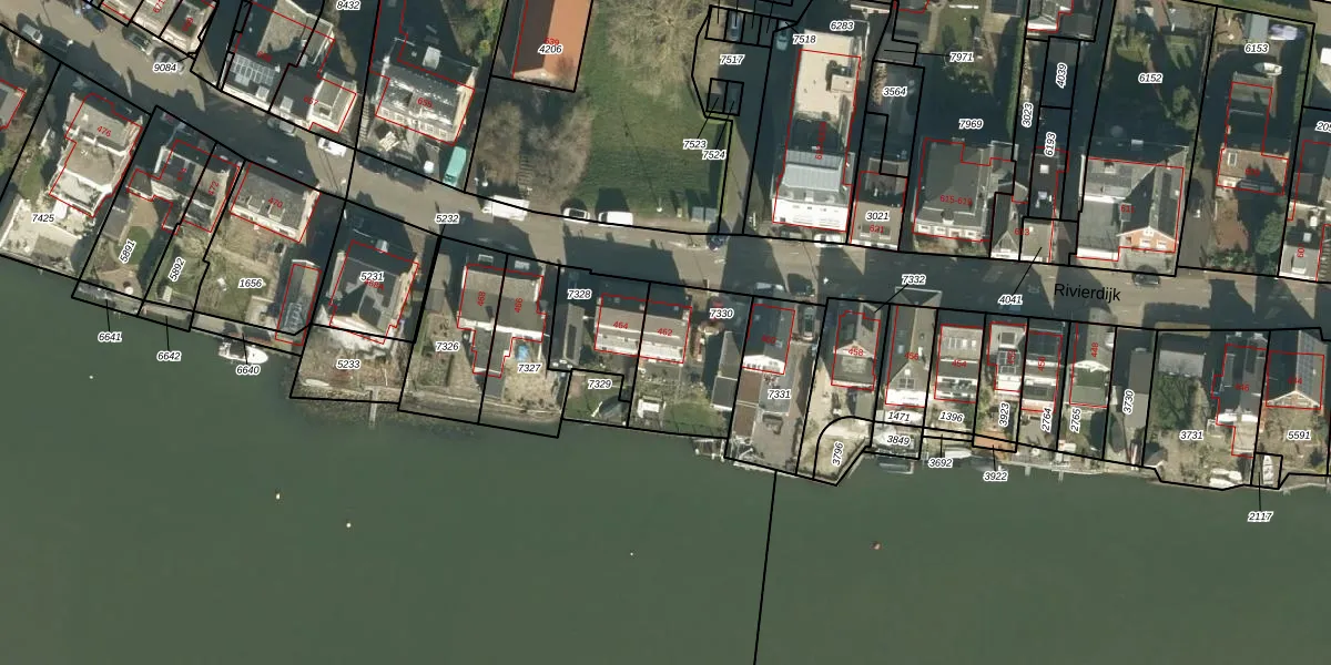 Het perceel waarop Rivierdijk 462 staat heeft een oppervlakte van 353 m². Dit is een groot perceel. De perceeloppervlakte wordt geregistreerd door het Kadaster. Gedetailleerde informatie over de maten van dit perceel kunt u vinden in het rapport Kadastrale kaart met maatvoering van Rivierdijk 462.