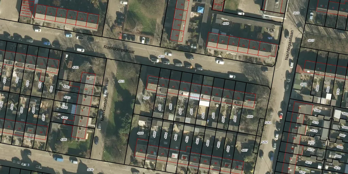 Het perceel waarop Roerdompstraat 21 staat heeft een oppervlakte van 181 m². Dit is een middelgroot perceel. De perceeloppervlakte wordt geregistreerd door het Kadaster. Gedetailleerde informatie over de maten van dit perceel kunt u vinden in het rapport Kadastrale kaart met maatvoering van Roerdompstraat 21.