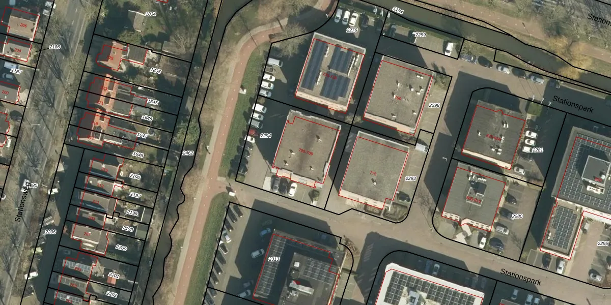 Het perceel waarop Stationspark 700 staat heeft een oppervlakte van 920 m². Dit is een groot perceel. De perceeloppervlakte wordt geregistreerd door het Kadaster. Gedetailleerde informatie over de maten van dit perceel kunt u vinden in het rapport Kadastrale kaart met maatvoering van Stationspark 700.