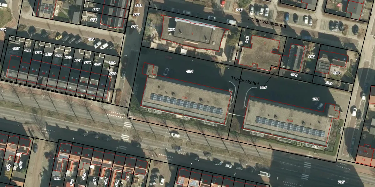 Het perceel waarop Thorbeckehof 13 staat heeft een oppervlakte van 2164 m². Dit is een zeer groot perceel. De perceeloppervlakte wordt geregistreerd door het Kadaster. Gedetailleerde informatie over de maten van dit perceel kunt u vinden in het rapport Kadastrale kaart met maatvoering van Thorbeckehof 13.