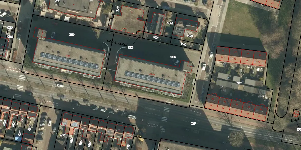 Het perceel waarop Thorbeckehof 33 staat heeft een oppervlakte van 2323 m². Dit is een zeer groot perceel. De perceeloppervlakte wordt geregistreerd door het Kadaster. Gedetailleerde informatie over de maten van dit perceel kunt u vinden in het rapport Kadastrale kaart met maatvoering van Thorbeckehof 33.