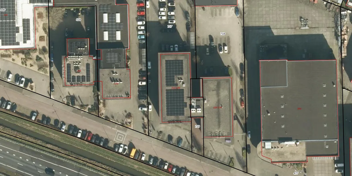 Het perceel waarop Trapezium 220 staat heeft een oppervlakte van 3078 m². Dit is een zeer groot perceel. De perceeloppervlakte wordt geregistreerd door het Kadaster. Gedetailleerde informatie over de maten van dit perceel kunt u vinden in het rapport Kadastrale kaart met maatvoering van Trapezium 220.