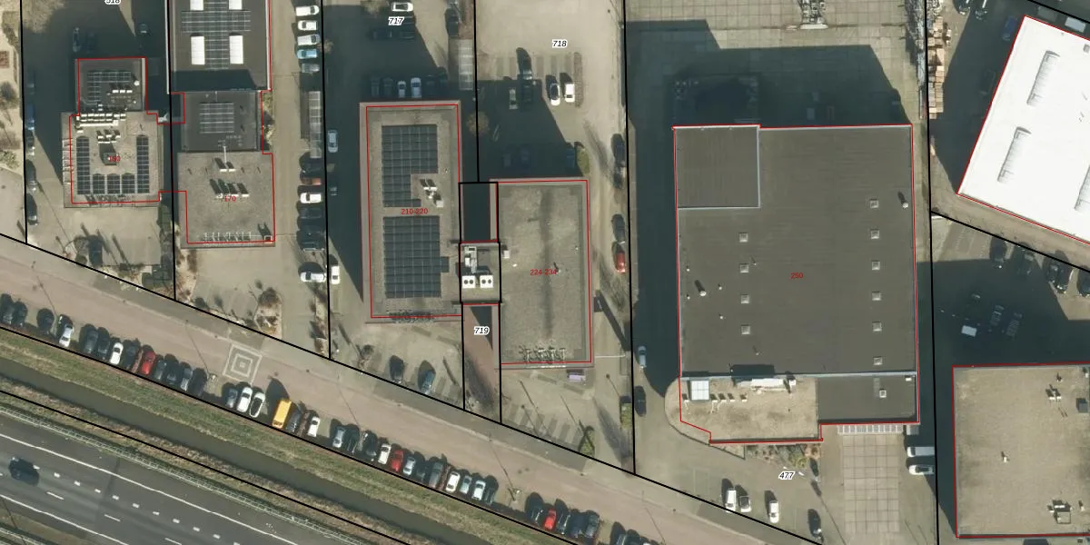 Het perceel waarop Trapezium 234 staat heeft een oppervlakte van 3018 m². Dit is een zeer groot perceel. De perceeloppervlakte wordt geregistreerd door het Kadaster. Gedetailleerde informatie over de maten van dit perceel kunt u vinden in het rapport Kadastrale kaart met maatvoering van Trapezium 234.