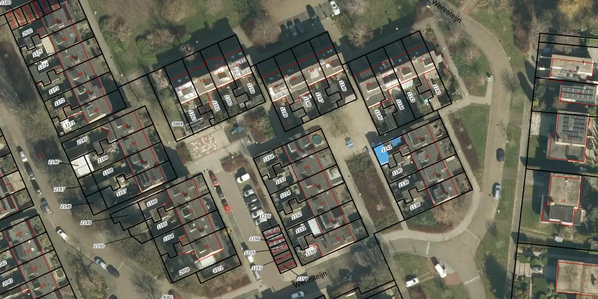 Het perceel waarop Weresteijn 67 staat heeft een oppervlakte van 164 m². Dit is een middelgroot perceel. De perceeloppervlakte wordt geregistreerd door het Kadaster. Gedetailleerde informatie over de maten van dit perceel kunt u vinden in het rapport Kadastrale kaart met maatvoering van Weresteijn 67.