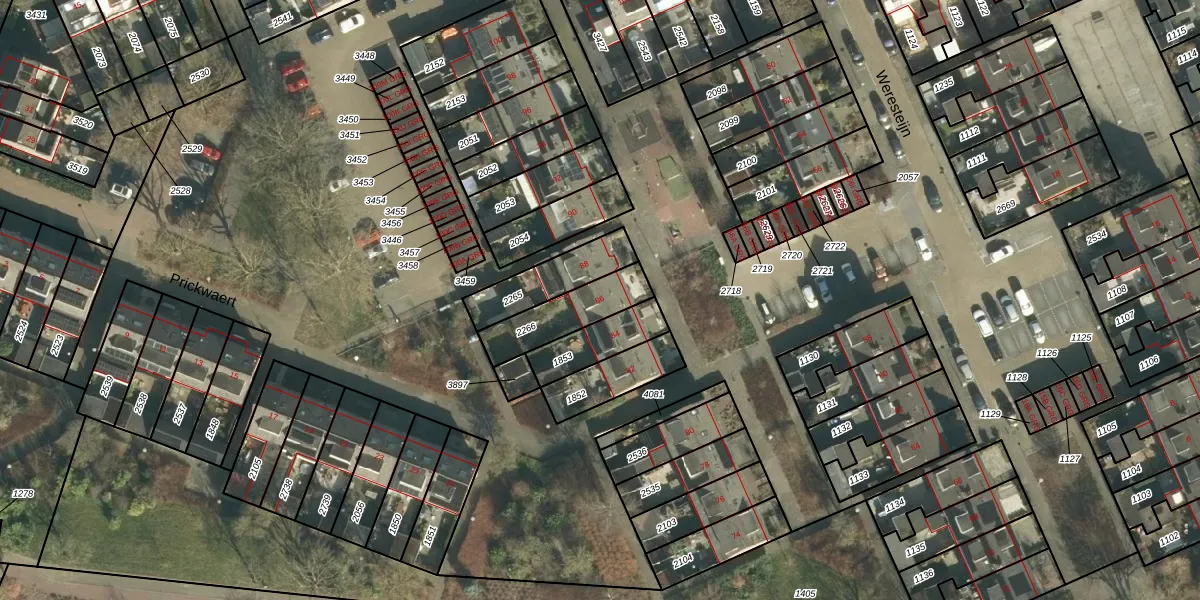 Het perceel waarop Weresteijn 86 staat heeft een oppervlakte van 184 m². Dit is een middelgroot perceel. De perceeloppervlakte wordt geregistreerd door het Kadaster. Gedetailleerde informatie over de maten van dit perceel kunt u vinden in het rapport Kadastrale kaart met maatvoering van Weresteijn 86.