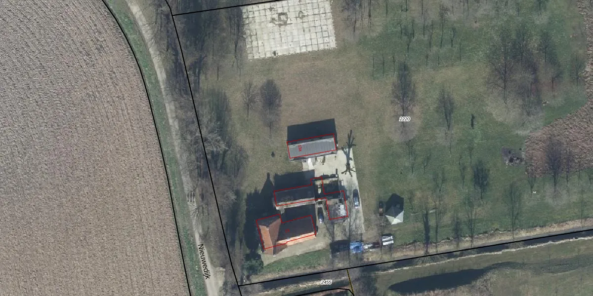 Nieuwedijk 13-a is gelegen op kadastraal perceel VBG02L2220. Deze kadastrale aanduiding is uniek en wordt gebruikt door het Kadaster om eigendomsrechten en andere zakelijke rechten vast te leggen. Het perceel maakt onderdeel uit van de kadastrale gemeente Valburg.