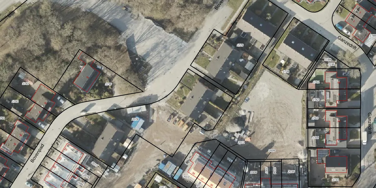 Het perceel waarop Bovenpad 39 staat heeft een oppervlakte van 2067 m². Dit is een zeer groot perceel. De perceeloppervlakte wordt geregistreerd door het Kadaster. Gedetailleerde informatie over de maten van dit perceel kunt u vinden in het rapport Kadastrale kaart met maatvoering van Bovenpad 39.