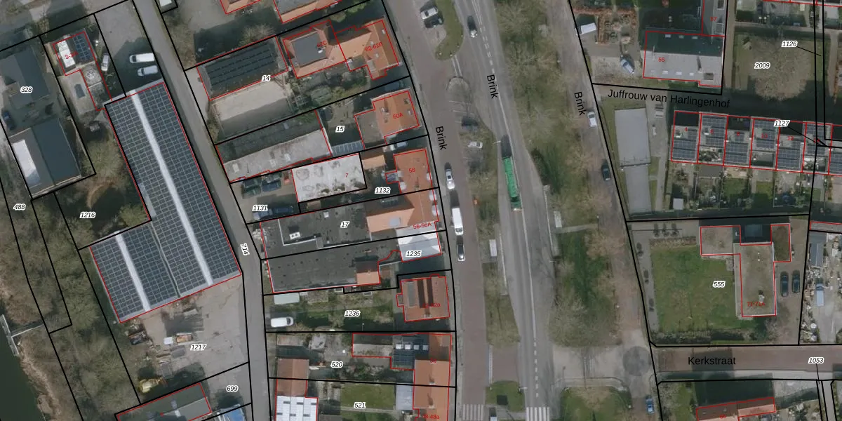 Het perceel waarop Brink 56 staat heeft een oppervlakte van 446 m². Dit is een groot perceel. De perceeloppervlakte wordt geregistreerd door het Kadaster. Gedetailleerde informatie over de maten van dit perceel kunt u vinden in het rapport Kadastrale kaart met maatvoering van Brink 56.