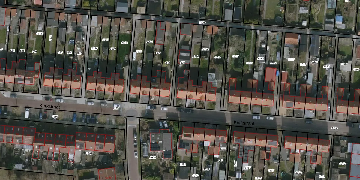 Gebruik de zoekbalk of klik op een perceel voor informatie over de adressen binnen dit perceel.