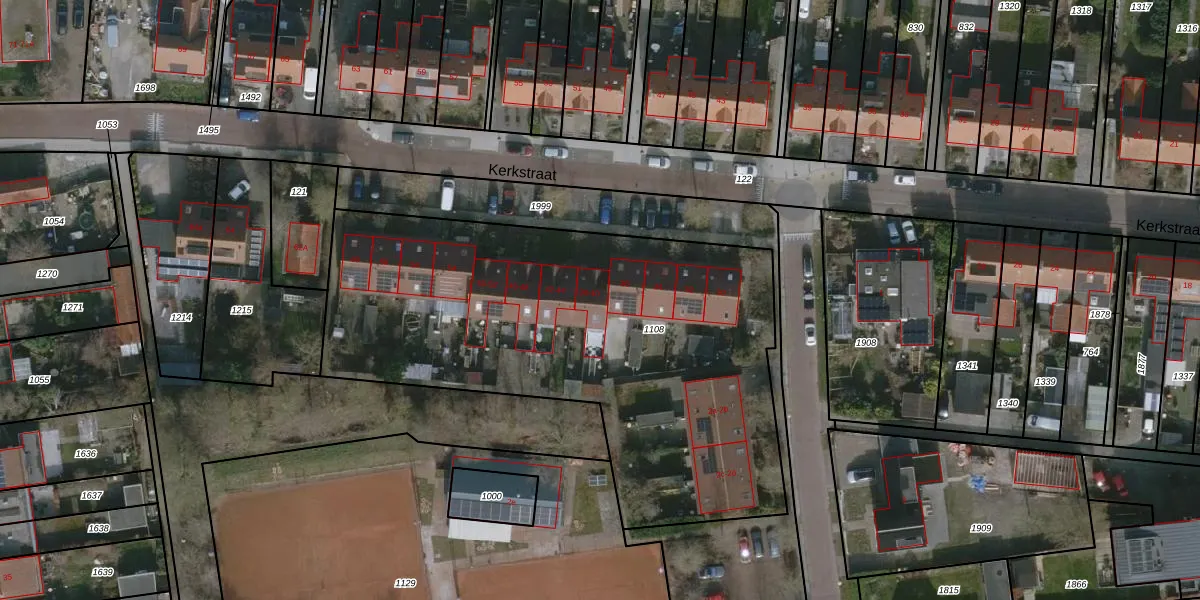 Het perceel waarop Kerkstraat 38 staat heeft een oppervlakte van 2630 m². Dit is een zeer groot perceel. De perceeloppervlakte wordt geregistreerd door het Kadaster. Gedetailleerde informatie over de maten van dit perceel kunt u vinden in het rapport Kadastrale kaart met maatvoering van Kerkstraat 38.