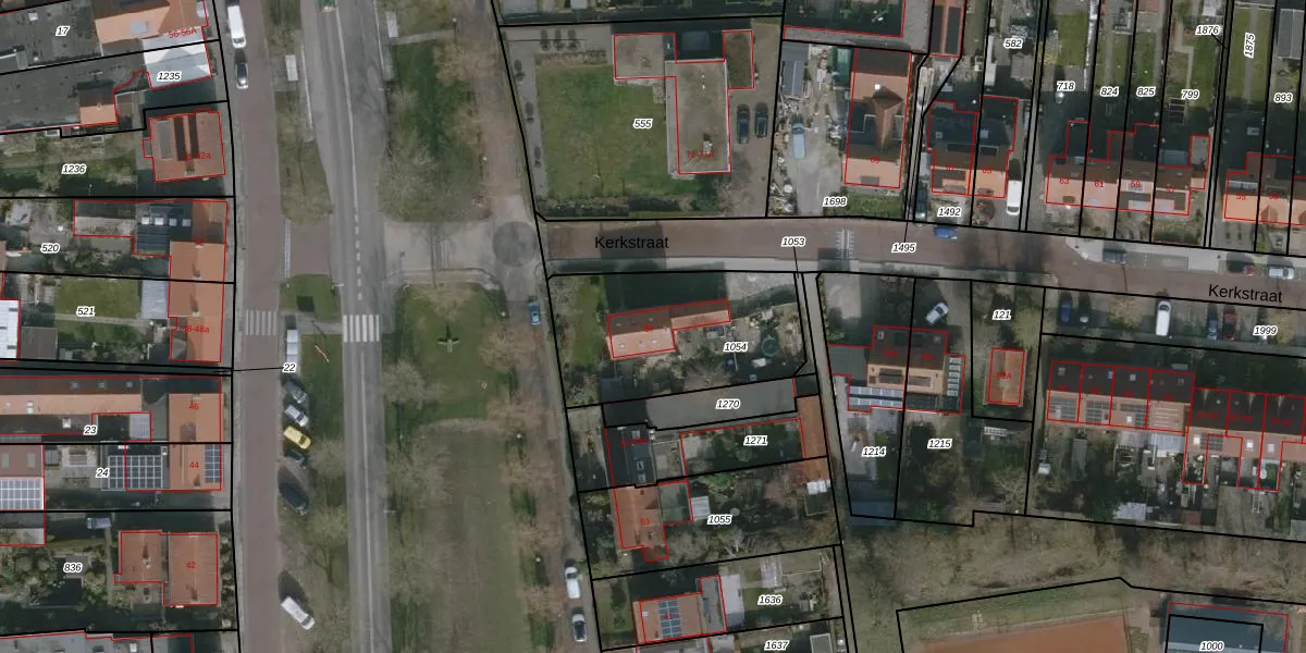 Het perceel waarop Kerkstraat 66 staat heeft een oppervlakte van 706 m². Dit is een groot perceel. De perceeloppervlakte wordt geregistreerd door het Kadaster. Gedetailleerde informatie over de maten van dit perceel kunt u vinden in het rapport Kadastrale kaart met maatvoering van Kerkstraat 66.