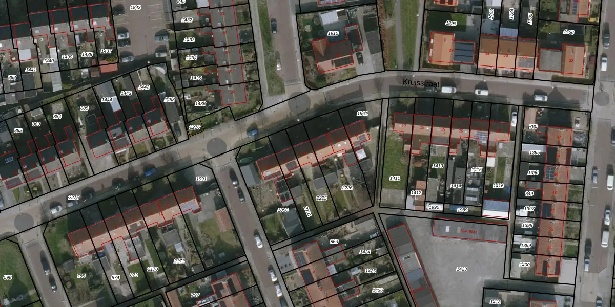 Gebruik de zoekbalk of klik op een perceel voor informatie over de adressen binnen dit perceel.