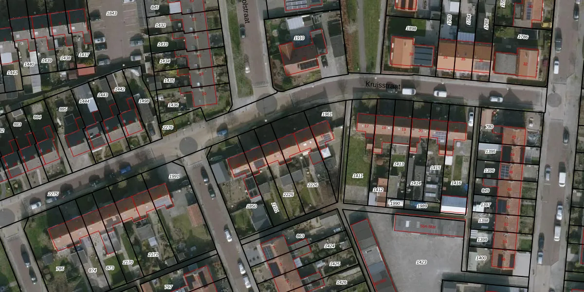 Het perceel waarop Kruisstraat 14 staat heeft een oppervlakte van 397 m². Dit is een groot perceel. De perceeloppervlakte wordt geregistreerd door het Kadaster. Gedetailleerde informatie over de maten van dit perceel kunt u vinden in het rapport Kadastrale kaart met maatvoering van Kruisstraat 14.