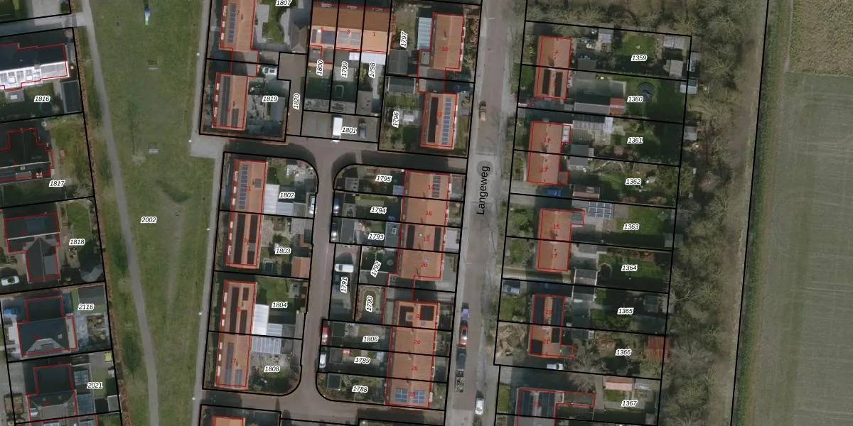 Het perceel waarop Langeweg 16 staat heeft een oppervlakte van 186 m². Dit is een middelgroot perceel. De perceeloppervlakte wordt geregistreerd door het Kadaster. Gedetailleerde informatie over de maten van dit perceel kunt u vinden in het rapport Kadastrale kaart met maatvoering van Langeweg 16.