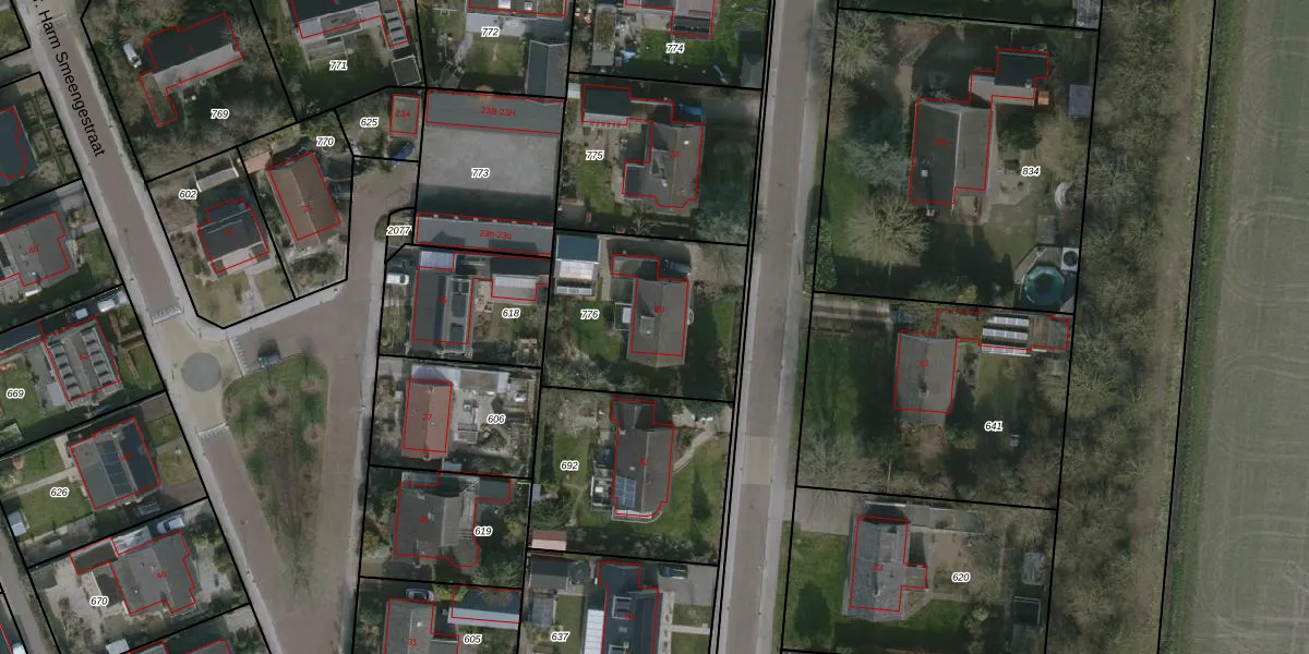 Gebruik de zoekbalk of klik op een perceel voor informatie over de adressen binnen dit perceel.