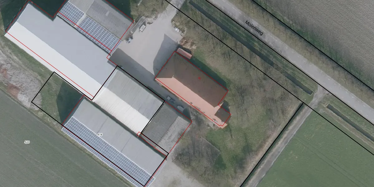 Het perceel waarop Molenweg 55 staat heeft een oppervlakte van 3,5 ha. Dit is een zeer groot perceel. De perceeloppervlakte wordt geregistreerd door het Kadaster. Gedetailleerde informatie over de maten van dit perceel kunt u vinden in het rapport Kadastrale kaart met maatvoering van Molenweg 55.