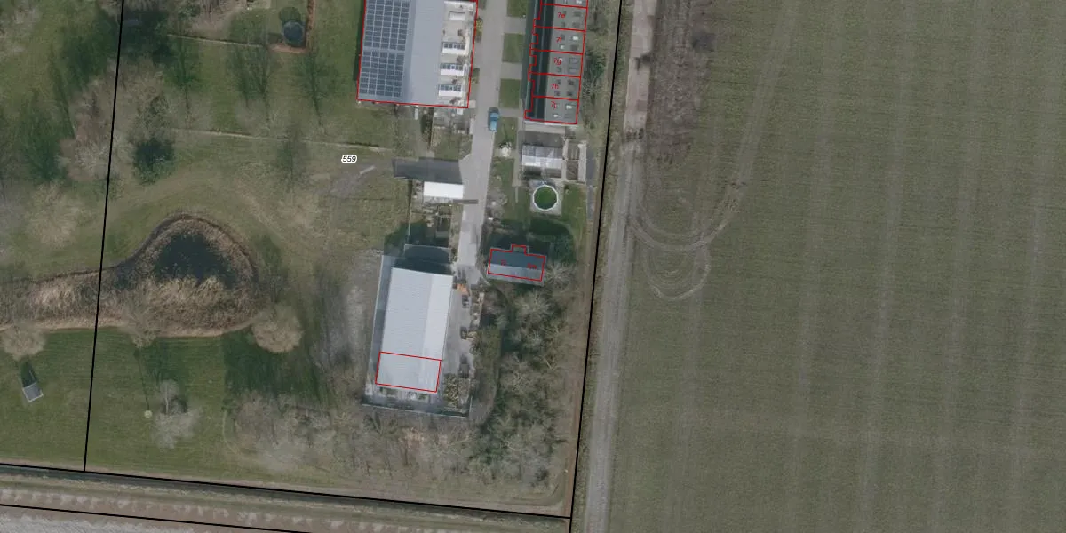 Het perceel waarop het adres ligt is WRG03-F-559. De afkorting 'WRG03' staat voor kadastrale gemeente Wieringermeer. Het perceel is 1,3 ha groot. Dat is kleiner dan de gemiddelde perceeloppervlakte in Wieringermeer, dat op 3,1 ha ligt. De grootste perceeloppervlakte in de kadastrale gemeente is 57,62 km². De kleinste oppervlakte bedraagt 0 m². Er zijn 12 adressen aanwezig op het perceel. De laatste wijziging in het de Basisregistratie Kadaster (BRK) was op 20-06-2025.