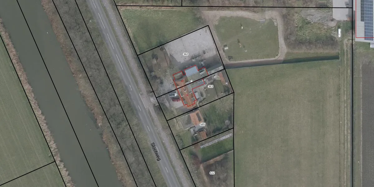 Het perceel waarop Slootweg 9 staat heeft een oppervlakte van 540 m². Dit is een groot perceel. De perceeloppervlakte wordt geregistreerd door het Kadaster. Gedetailleerde informatie over de maten van dit perceel kunt u vinden in het rapport Kadastrale kaart met maatvoering van Slootweg 9.