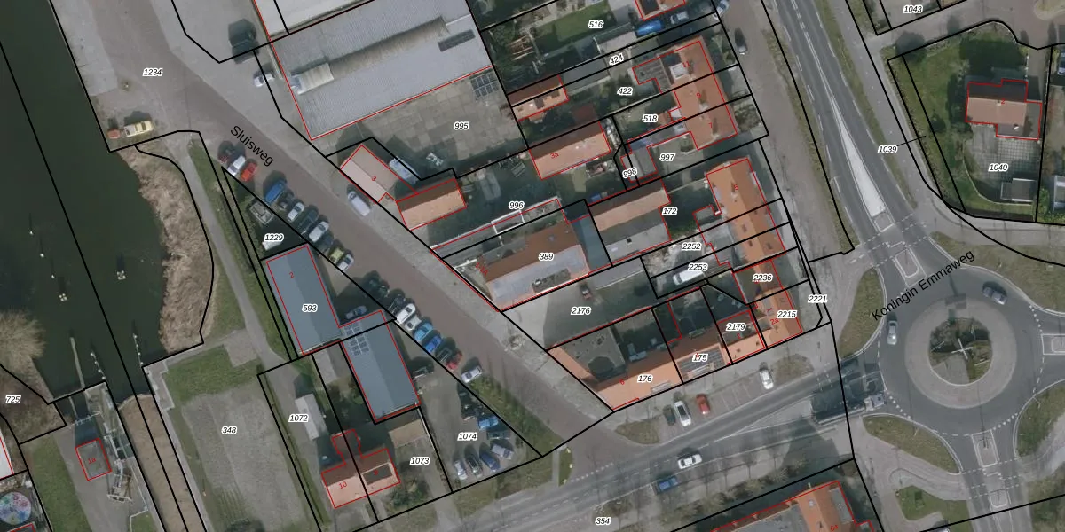 Het perceel waarop Sluisweg 1 staat heeft een oppervlakte van 355 m². Dit is een groot perceel. De perceeloppervlakte wordt geregistreerd door het Kadaster. Gedetailleerde informatie over de maten van dit perceel kunt u vinden in het rapport Kadastrale kaart met maatvoering van Sluisweg 1.