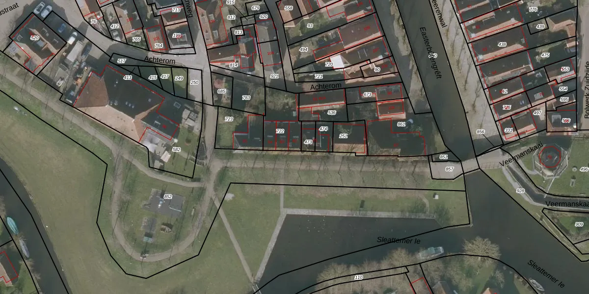 Het adres ligt op het perceel STN03-B-722, dat zich in de kadastrale gemeente Sloten Friesland bevindt. Het perceel is kleiner dan gemiddeld in Sloten Friesland. Het perceel is 250 m² groot, terwijl het gemiddelde ligt op 2879,05 m². Het kleinste perceel in de kadastrale gemeente is 0 m² groot. De grootste perceeloppervlakte is 12,0 ha. Op het perceel liggen in totaal 3 adressen. De laatste wijziging in het de Basisregistratie Kadaster (BRK) was op 15-09-2003.