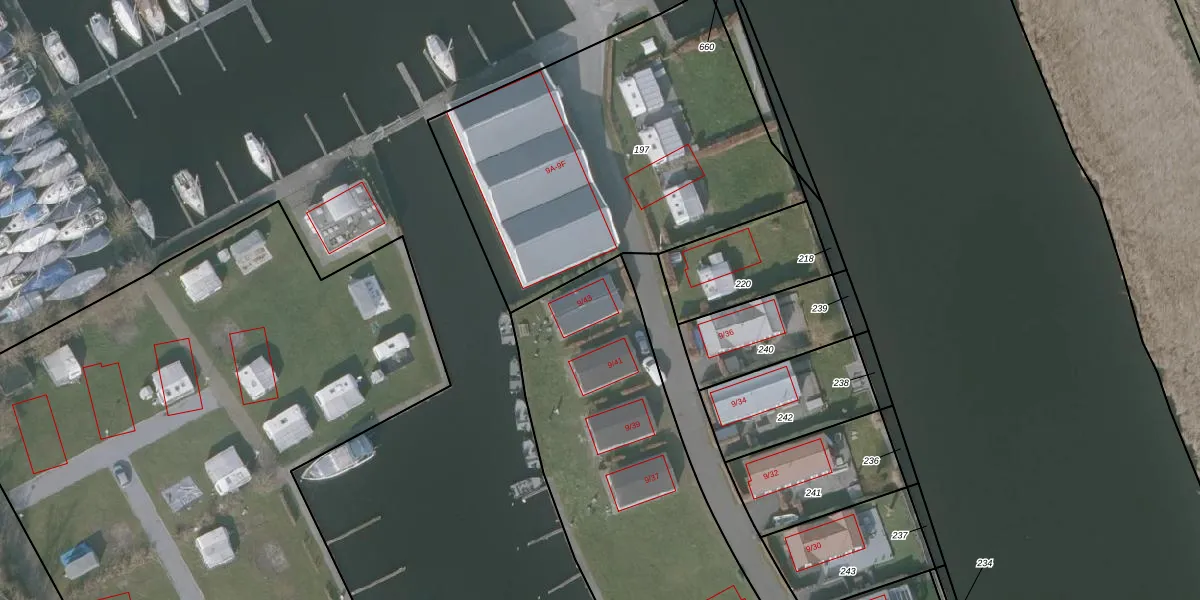 Jachthaven 9-43 is gelegen op kadastraal perceel STN03C202. Deze kadastrale aanduiding is uniek en wordt gebruikt door het Kadaster om eigendomsrechten en andere zakelijke rechten vast te leggen. Het perceel maakt onderdeel uit van de kadastrale gemeente Sloten Friesland.