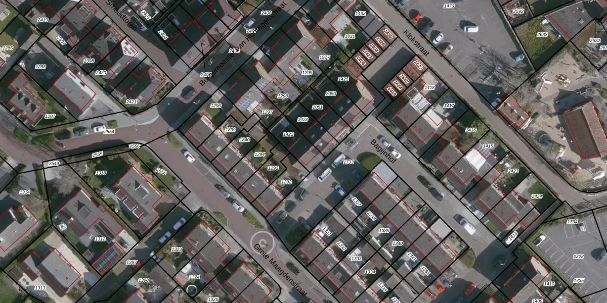 Het perceel waarop Bagijnhof 1 staat heeft een oppervlakte van 153 m². Dit is een middelgroot perceel. De perceeloppervlakte wordt geregistreerd door het Kadaster. Gedetailleerde informatie over de maten van dit perceel kunt u vinden in het rapport Kadastrale kaart met maatvoering van Bagijnhof 1.