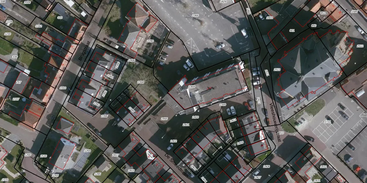 Het adres is gelegen op perceel 2364 in de sectie I en de kadastrale gemeente Sluis. De kadastrale aanduiding is aldus SLU00-I-2364. Het perceel is kleiner dan gemiddeld in Sluis. Het perceel is 1190 m² groot, terwijl het gemiddelde ligt op 7814,02 m². Het grootste perceel in de kadastrale gemeente is 64,5 ha. Het kleinste perceel heeft een oppervlakte van 0 m². Op het perceel zijn 15 adressen aanwezig. De huidige grenzen van het perceel zijn digitaal in de Basisregistratie Kadaster (BRK) geregistreerd op 05-09-2011.