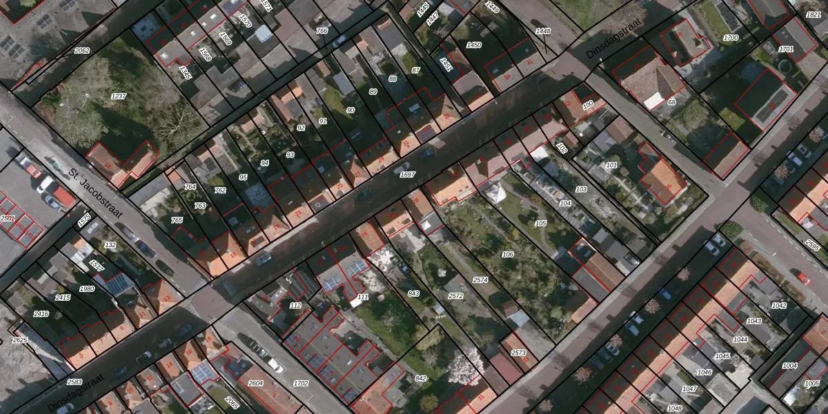 Dinsdagstraat 28 is gelegen op kadastraal perceel SLU00I2574. Deze kadastrale aanduiding is uniek en wordt gebruikt door het Kadaster om eigendomsrechten en andere zakelijke rechten vast te leggen. Het perceel maakt onderdeel uit van de kadastrale gemeente Sluis.