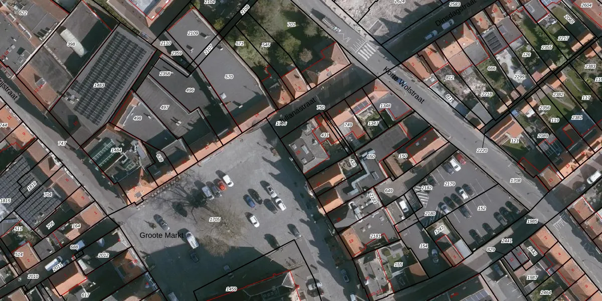 Groote Markt 15 is gelegen op kadastraal perceel SLU00I431. Deze kadastrale aanduiding is uniek en wordt gebruikt door het Kadaster om eigendomsrechten en andere zakelijke rechten vast te leggen. Het perceel maakt onderdeel uit van de kadastrale gemeente Sluis.