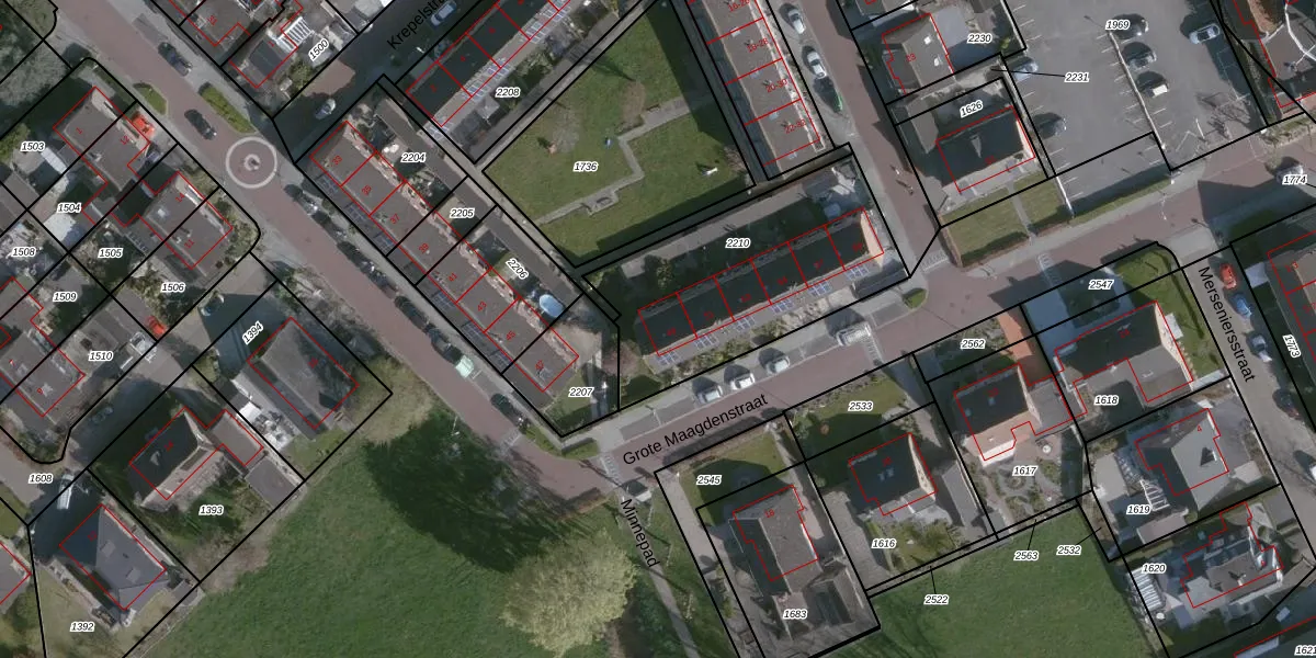 Het perceel waarop Grote Maagdenstraat 49 staat heeft een oppervlakte van 936 m². Dit is een groot perceel. De perceeloppervlakte wordt geregistreerd door het Kadaster. Gedetailleerde informatie over de maten van dit perceel kunt u vinden in het rapport Kadastrale kaart met maatvoering van Grote Maagdenstraat 49.