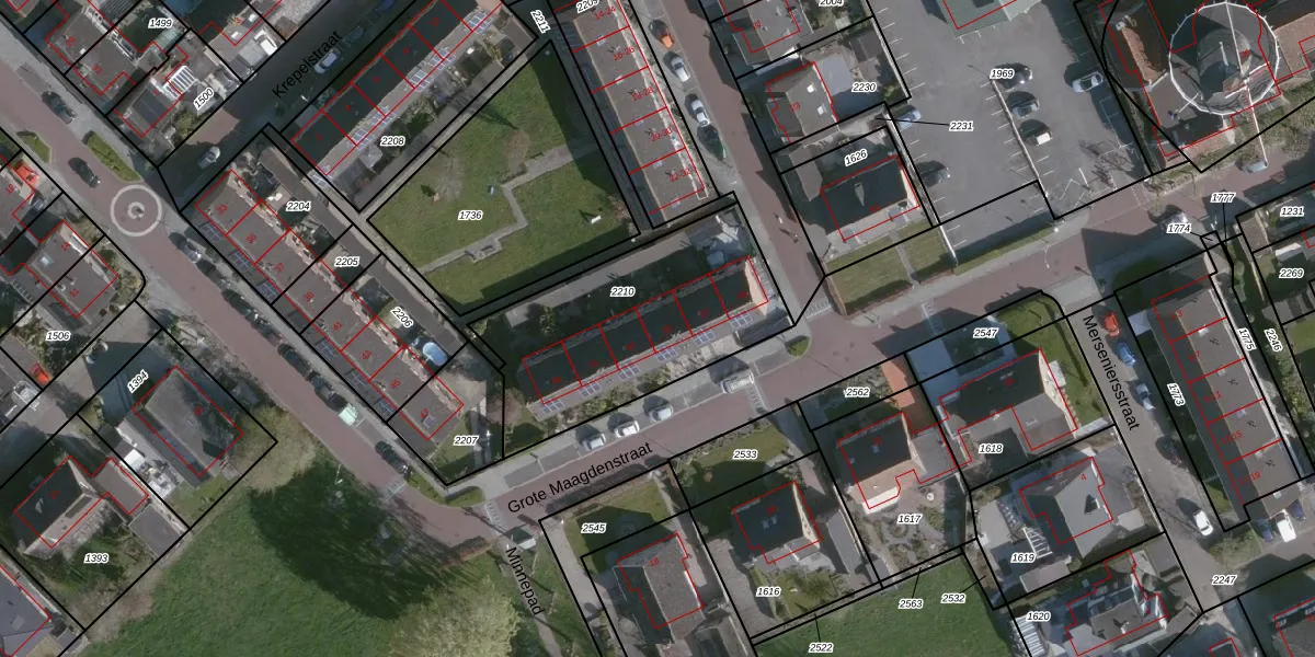 Het perceel waarop Grote Maagdenstraat 55 staat heeft een oppervlakte van 936 m². Dit is een groot perceel. De perceeloppervlakte wordt geregistreerd door het Kadaster. Gedetailleerde informatie over de maten van dit perceel kunt u vinden in het rapport Kadastrale kaart met maatvoering van Grote Maagdenstraat 55.