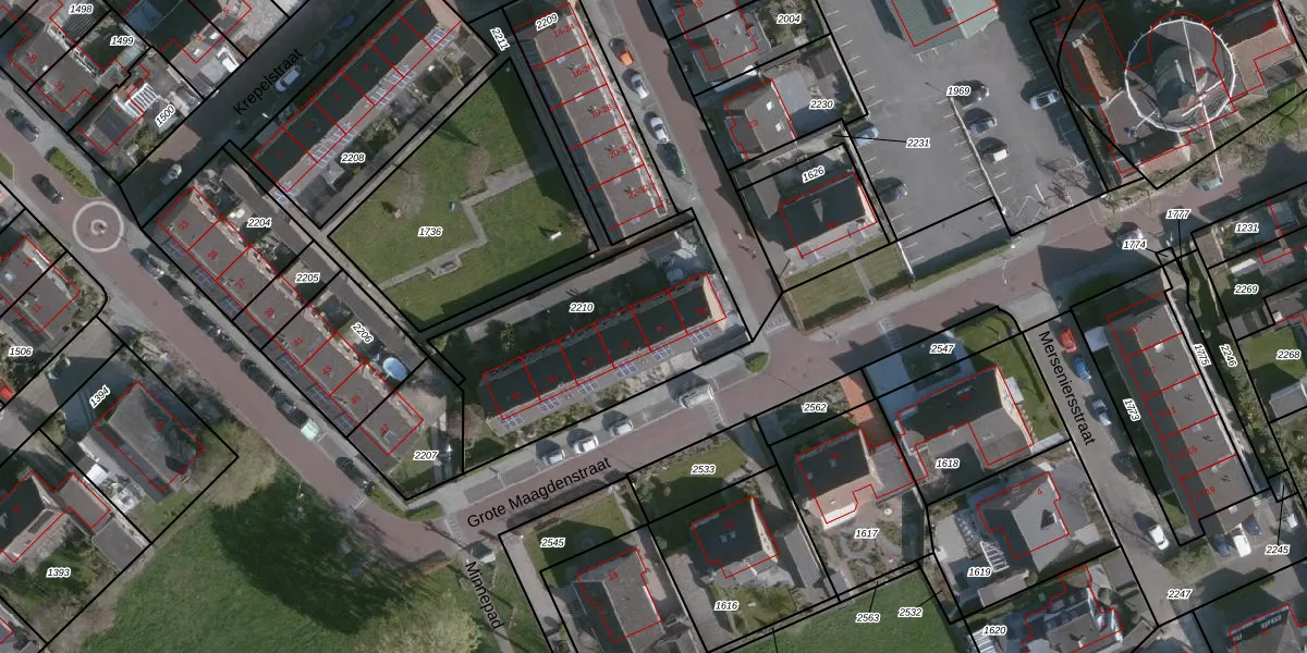 Grote Maagdenstraat 57 is gelegen op kadastraal perceel SLU00I2210. Deze kadastrale aanduiding is uniek en wordt gebruikt door het Kadaster om eigendomsrechten en andere zakelijke rechten vast te leggen. Het perceel maakt onderdeel uit van de kadastrale gemeente Sluis.