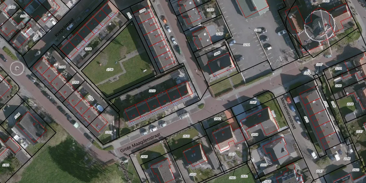 Het perceel waarop Grote Maagdenstraat 59 staat heeft een oppervlakte van 936 m². Dit is een groot perceel. De perceeloppervlakte wordt geregistreerd door het Kadaster. Gedetailleerde informatie over de maten van dit perceel kunt u vinden in het rapport Kadastrale kaart met maatvoering van Grote Maagdenstraat 59.