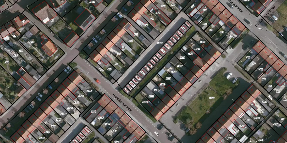Het perceel waarop Handboogstraat 1-G7 staat heeft een oppervlakte van 34 m². Dit is een klein perceel. De perceeloppervlakte wordt geregistreerd door het Kadaster. Gedetailleerde informatie over de maten van dit perceel kunt u vinden in het rapport Kadastrale kaart met maatvoering van Handboogstraat 1-G7.