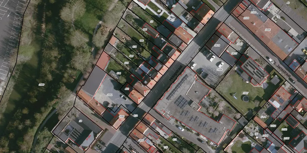 Gebruik de zoekbalk of klik op een perceel voor informatie over de adressen binnen dit perceel.