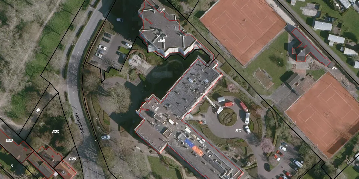 Het perceel waarop Hoogstraat 58-K002 staat heeft een oppervlakte van 9851 m². Dit is een zeer groot perceel. De perceeloppervlakte wordt geregistreerd door het Kadaster. Gedetailleerde informatie over de maten van dit perceel kunt u vinden in het rapport Kadastrale kaart met maatvoering van Hoogstraat 58-K002.