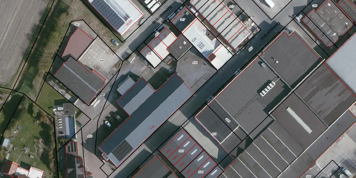 Industrieweg 1-B is gelegen op kadastraal perceel SLU00P454. Deze kadastrale aanduiding is uniek en wordt gebruikt door het Kadaster om eigendomsrechten en andere zakelijke rechten vast te leggen. Het perceel maakt onderdeel uit van de kadastrale gemeente Sluis.