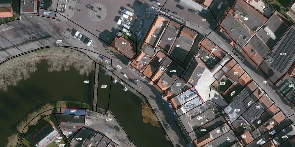 Het perceel waarop Kaai 28 staat heeft een oppervlakte van 133 m². Dit is een middelgroot perceel. De perceeloppervlakte wordt geregistreerd door het Kadaster. Gedetailleerde informatie over de maten van dit perceel kunt u vinden in het rapport Kadastrale kaart met maatvoering van Kaai 28.