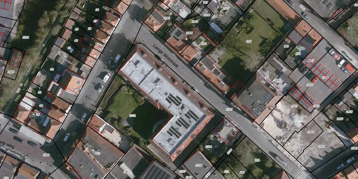 Lange Wolstraat 11-A is gelegen op kadastraal perceel SLU00I2111. Deze kadastrale aanduiding is uniek en wordt gebruikt door het Kadaster om eigendomsrechten en andere zakelijke rechten vast te leggen. Het perceel maakt onderdeel uit van de kadastrale gemeente Sluis.