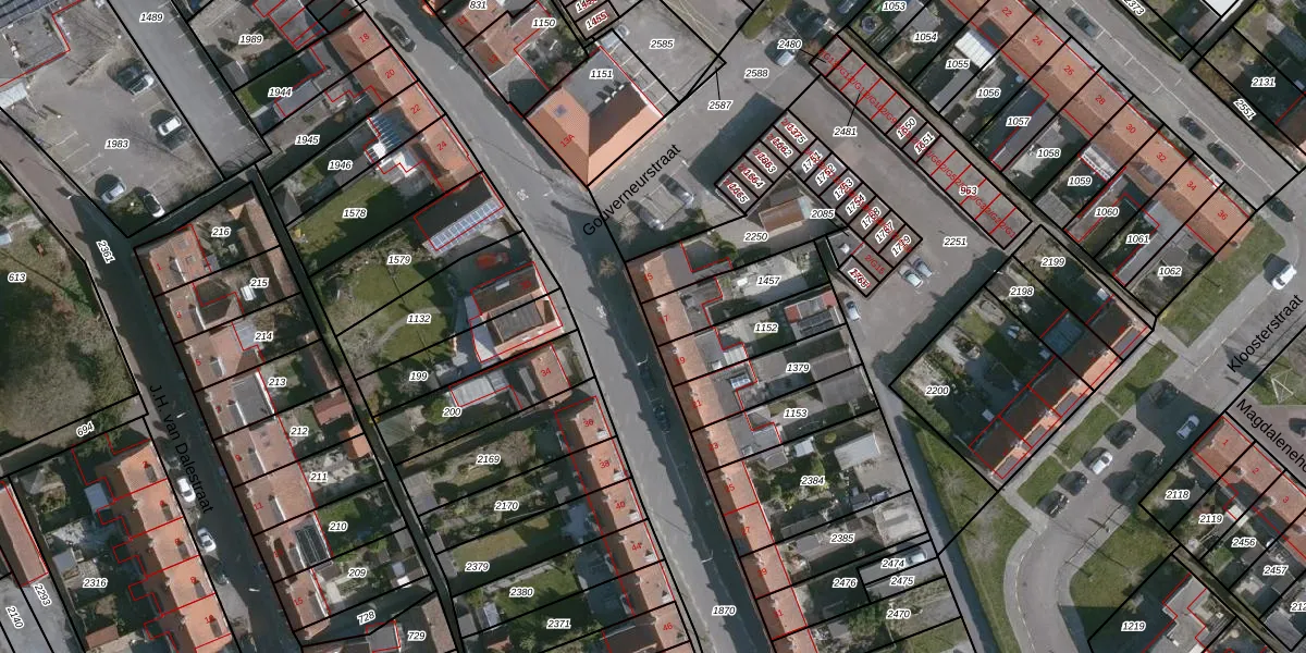 Gebruik de zoekbalk of klik op een perceel voor informatie over de adressen binnen dit perceel.