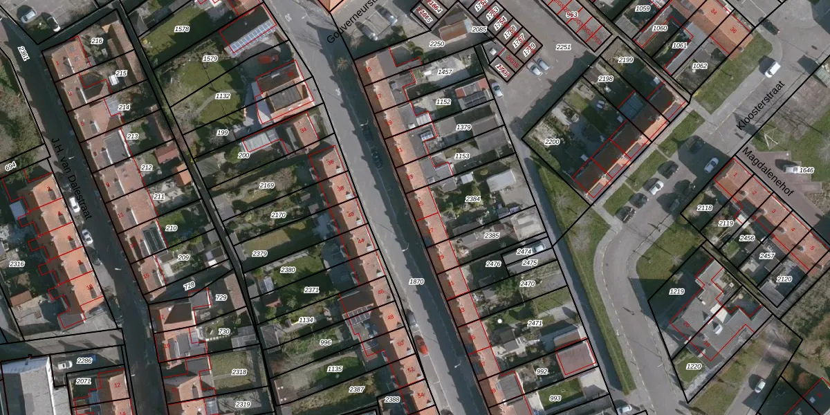 Ridderstraat 25 is gelegen op kadastraal perceel SLU00I2384. Deze kadastrale aanduiding is uniek en wordt gebruikt door het Kadaster om eigendomsrechten en andere zakelijke rechten vast te leggen. Het perceel maakt onderdeel uit van de kadastrale gemeente Sluis.