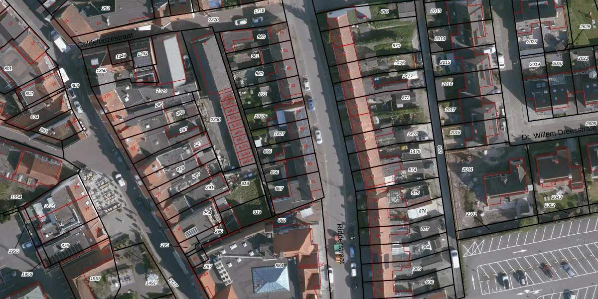 Ridderstraat 88 is gelegen op kadastraal perceel SLU00I865. Deze kadastrale aanduiding is uniek en wordt gebruikt door het Kadaster om eigendomsrechten en andere zakelijke rechten vast te leggen. Het perceel maakt onderdeel uit van de kadastrale gemeente Sluis.
