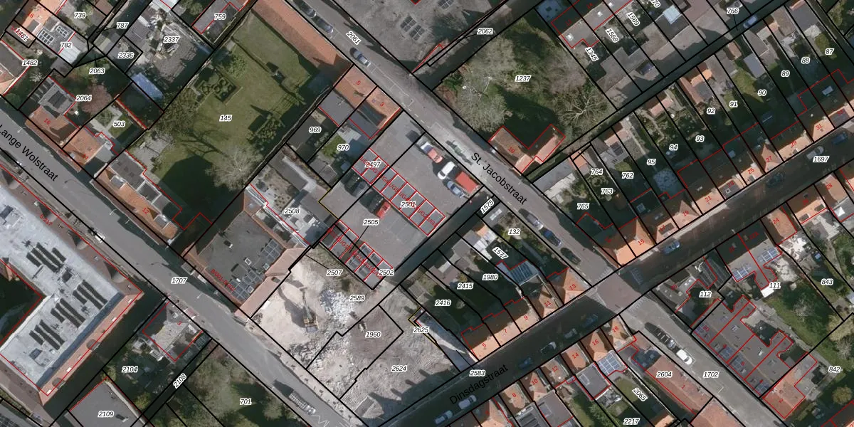 St. Jacobstraat 1-G2 is gelegen op kadastraal perceel SLU00I2501. Deze kadastrale aanduiding is uniek en wordt gebruikt door het Kadaster om eigendomsrechten en andere zakelijke rechten vast te leggen. Het perceel maakt onderdeel uit van de kadastrale gemeente Sluis.